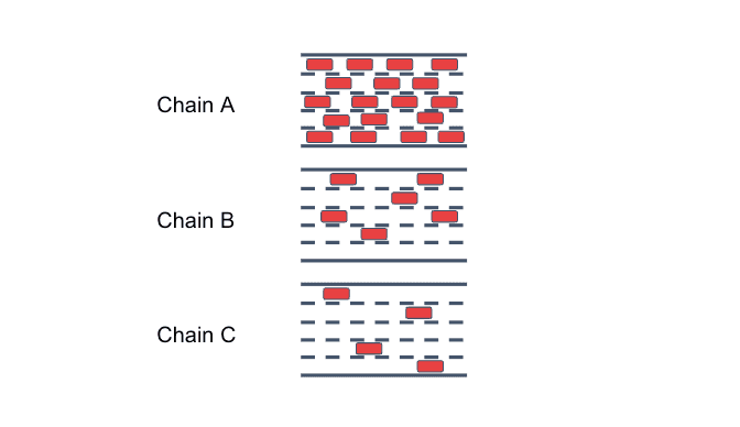 Separating the ecosystem into different chains creates independence from another. If congestion builds on one chain due to high network activity (e.g. an NFT drop, high volatility in token prices, new game launched), other chains are unaffected. One chain's congestion or increasing fees won't impact other chains. Going back to our highway analogy, we can think of the scaling through multiple chains as building many short highways in parallel.